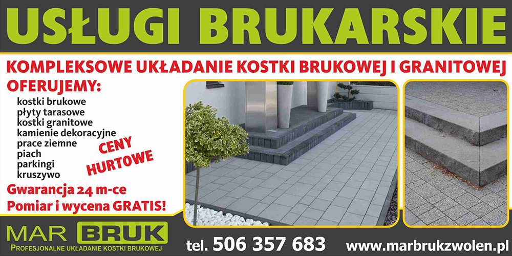 Wystaw opinię firmie MAR-BRUK – usługi brukarskie – układanie kostki brukowej – prace ziemne – Zwoleń Radom